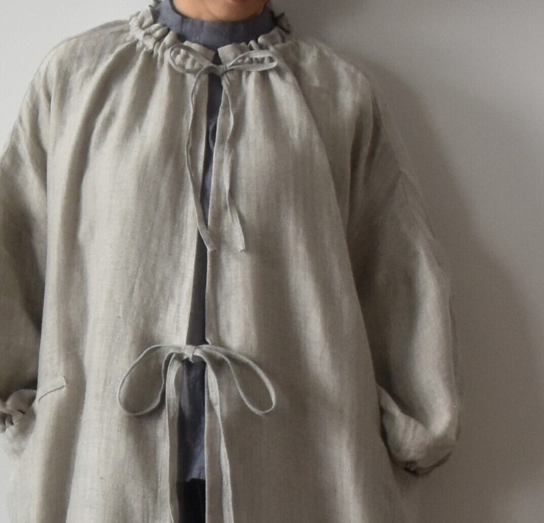 その生地をたっぷりと使っていますので、秋冬の室内着としても、ちょっとしたお出掛けに羽織りとしても活躍すること間違いなしです。