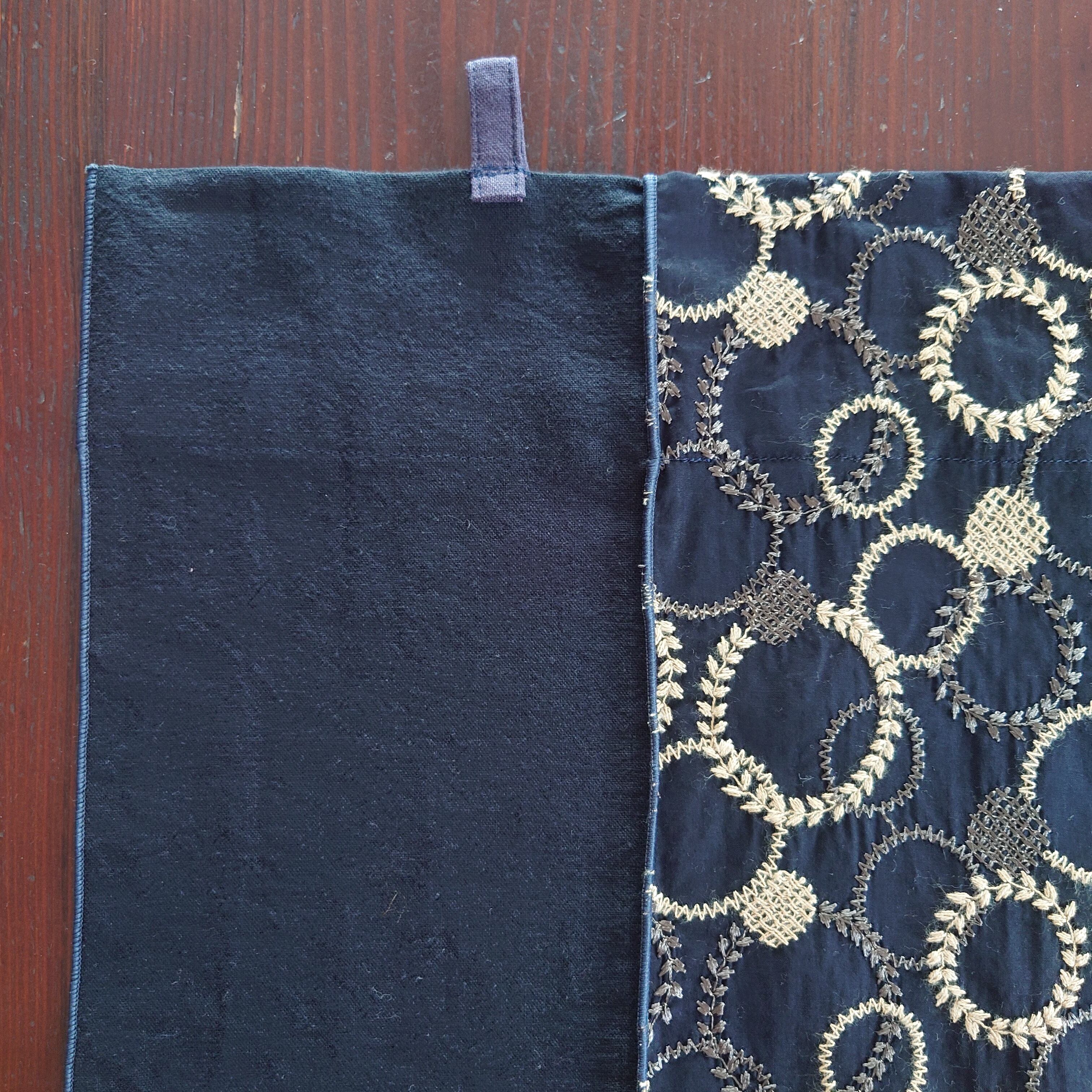 縁取りをロックミシンで巻きロック縫いをしているので、三つ折り縫いをしている部分がなく、軽さがあります。