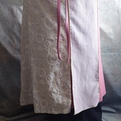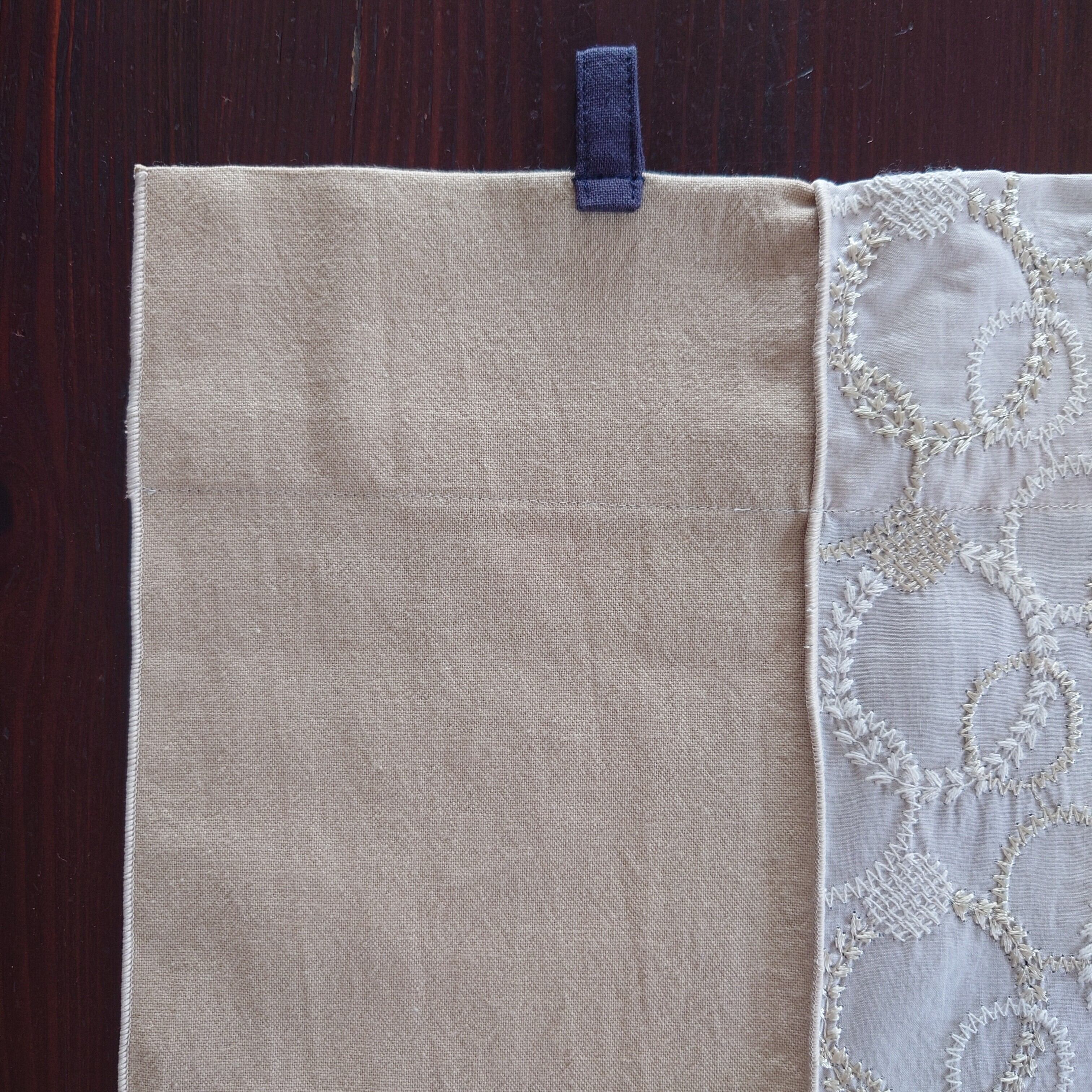 縁取りをロックミシンで巻きロック縫いをしているので、三つ折り縫いをしている部分がなく、軽さがあります。