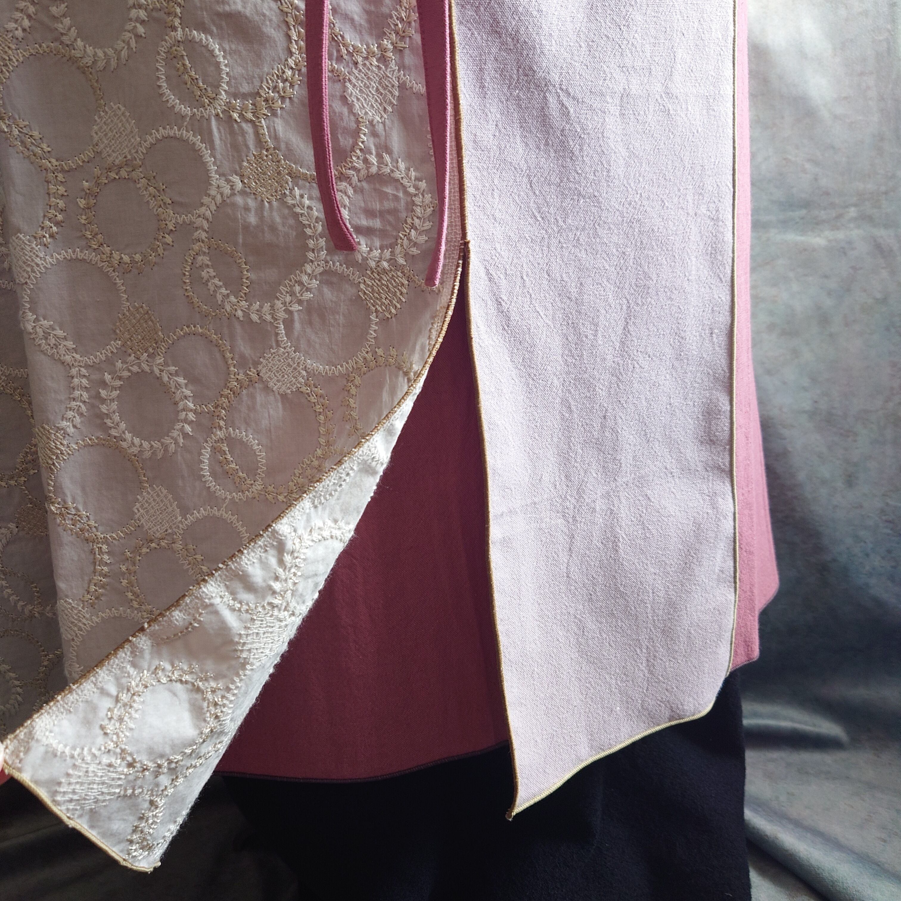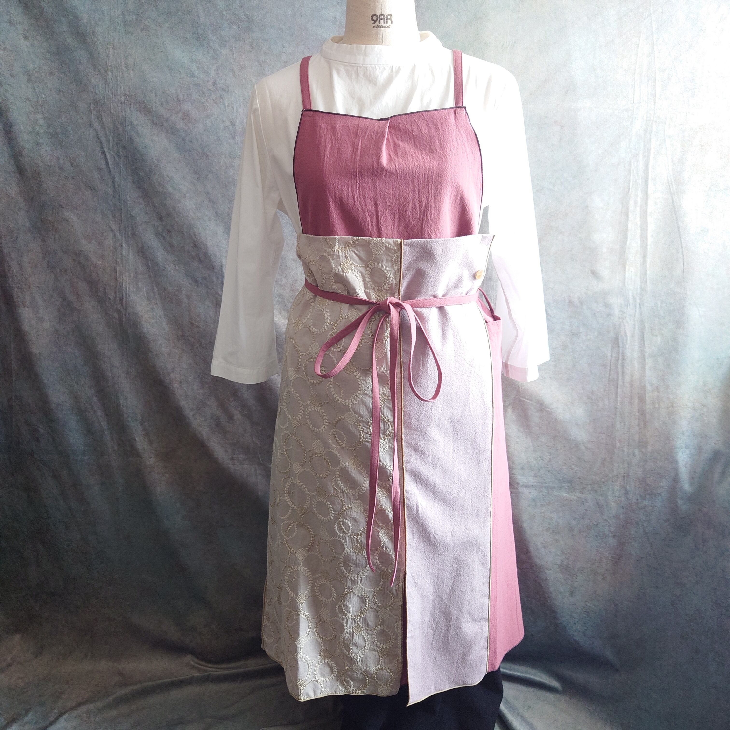 組み合わせ選べるChangenableエプロン ※前部分のみ サークル刺繍ベージュ×ライトピンク×ライトピンク (※本体部分は別売りです)