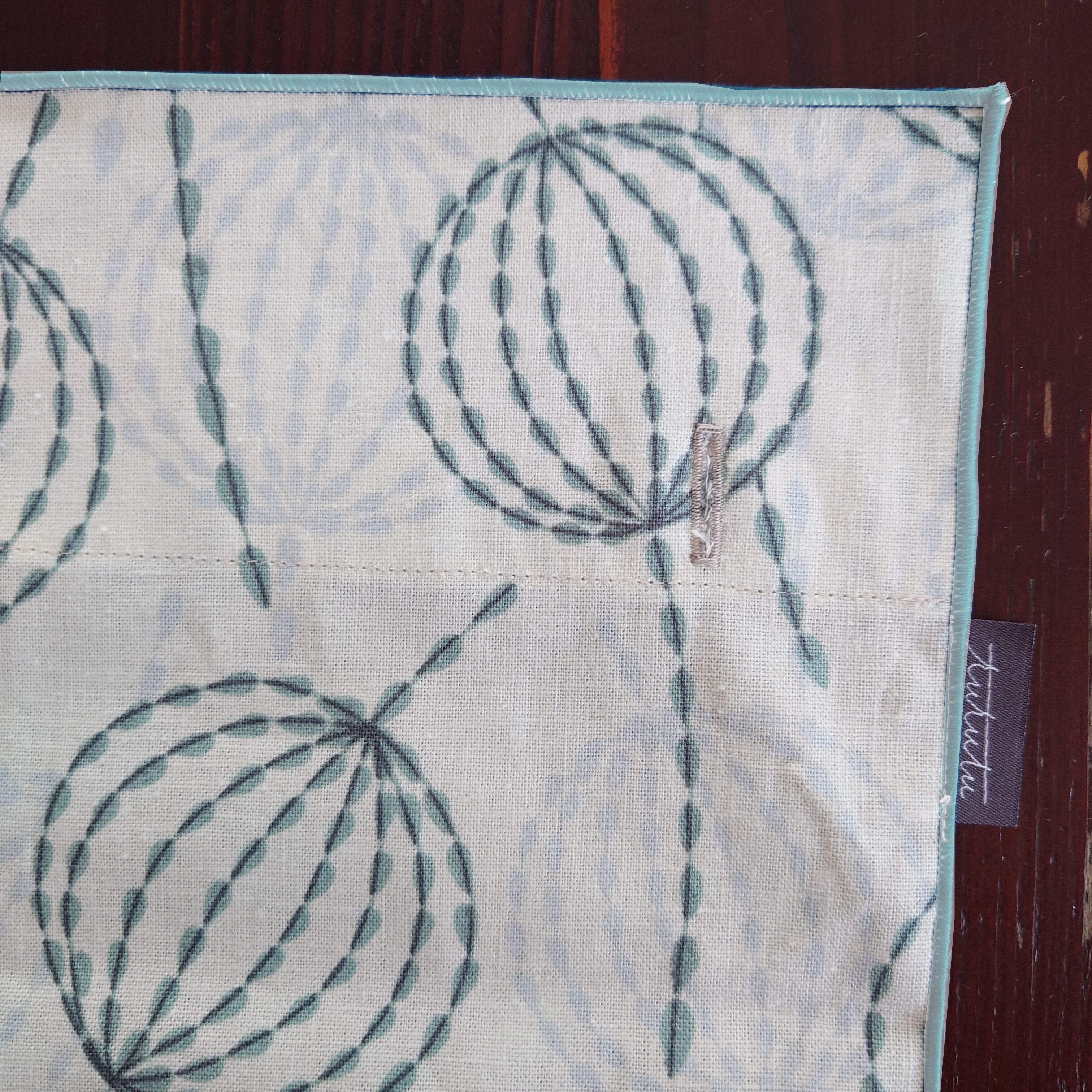 縁取りをロックミシンで巻きロック縫いをしているので、三つ折り縫いをしている部分がなく、軽さがあります。