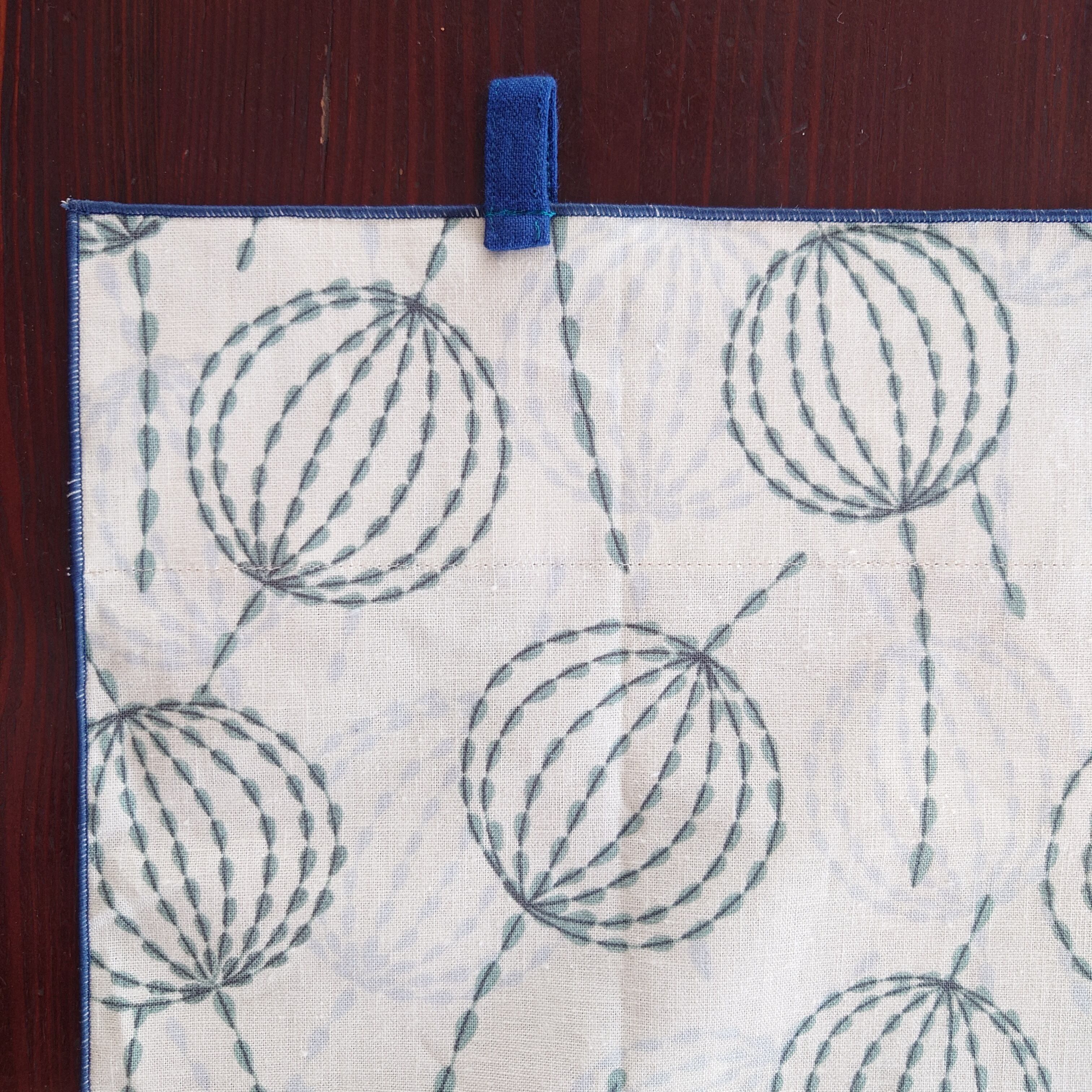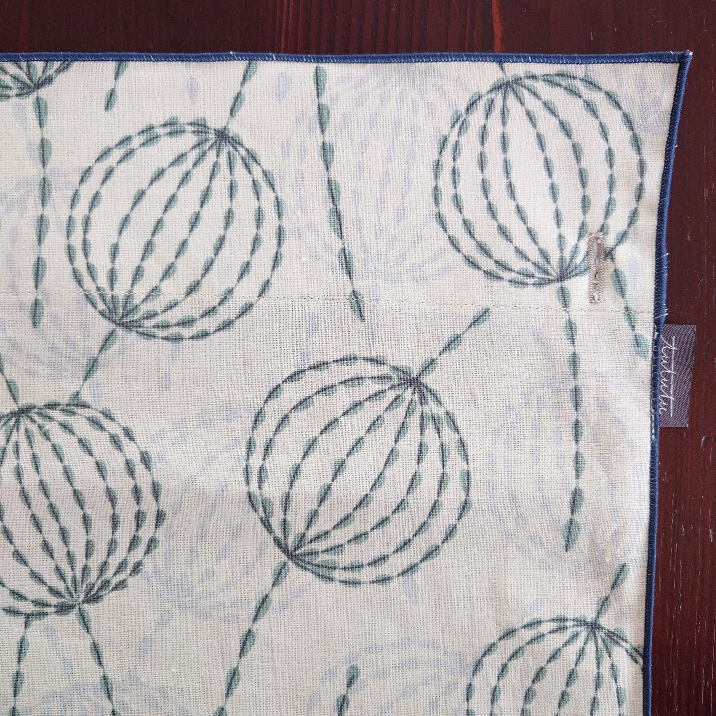 縁取りをロックミシンで巻きロック縫いをしているので、三つ折り縫いをしている部分がなく、軽さがあります。