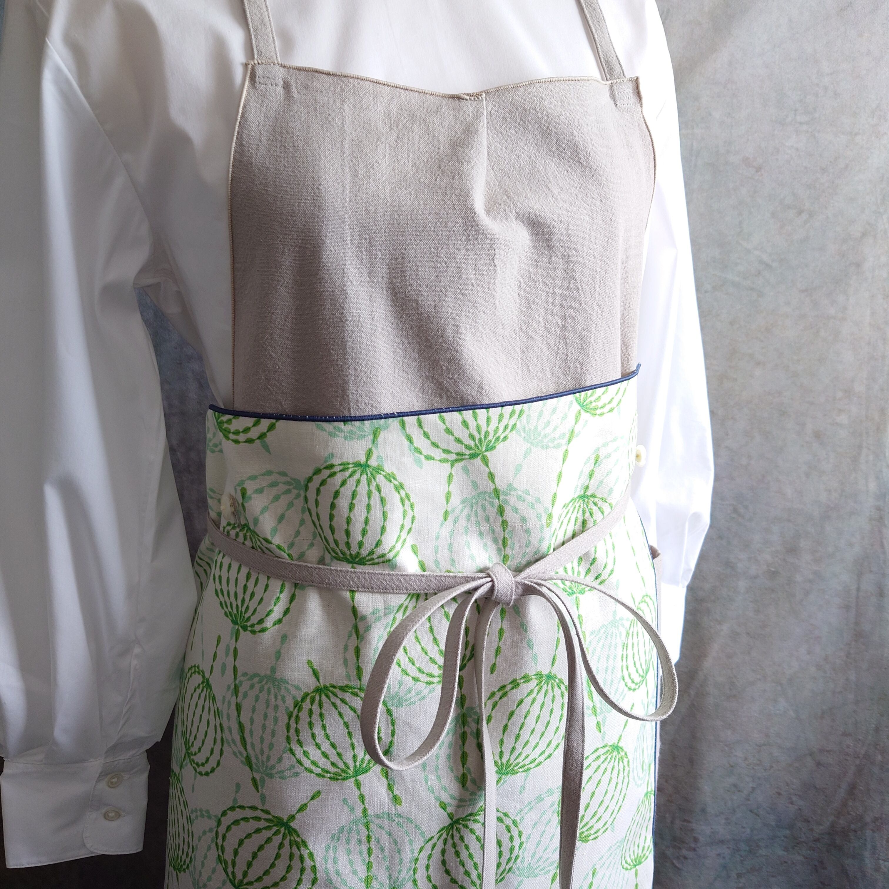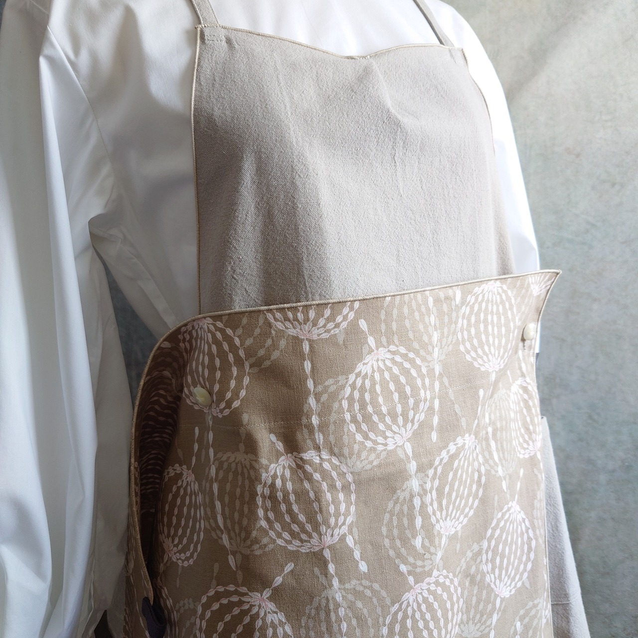 このエプロンを2セット持っていれば、4パターンのデザインのエプロンを持っていることになるので選択肢が二乗倍!