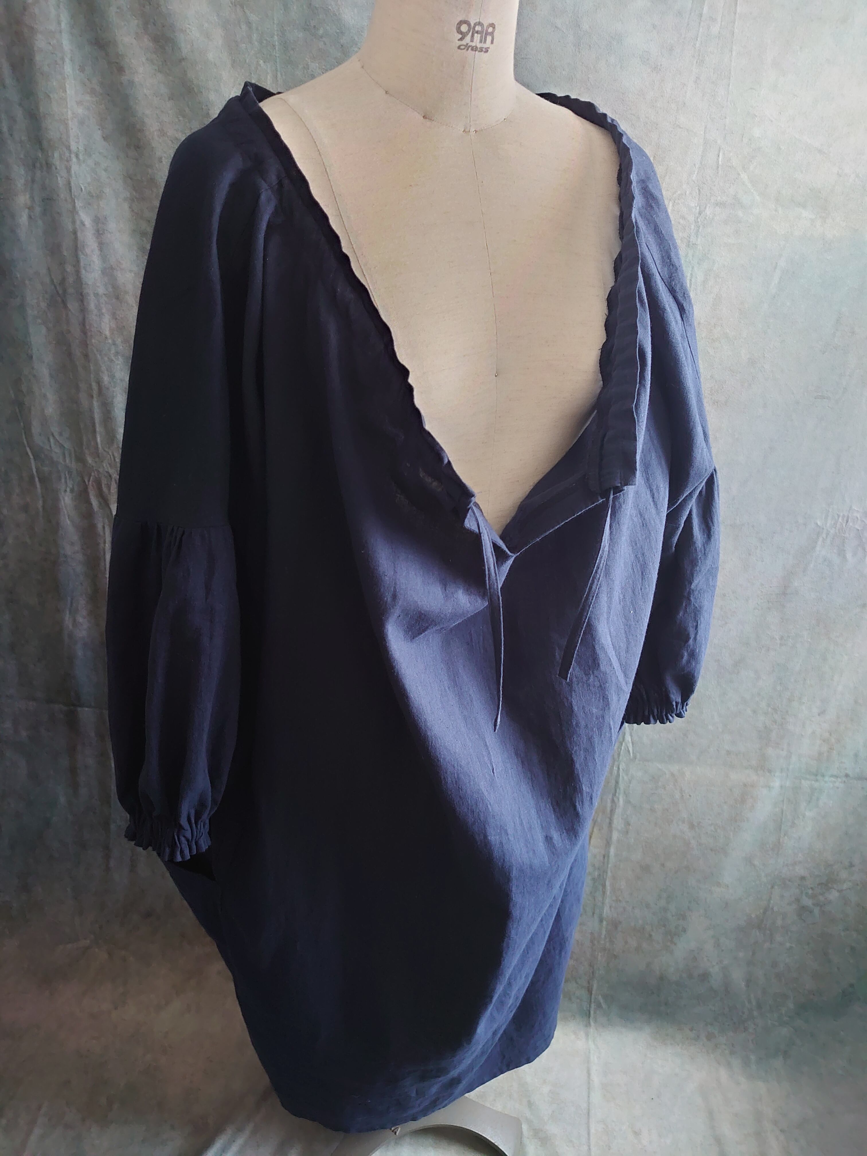 全ての紐を緩めると袖以外はギャザーはなくなって平らになりますので、洗濯後乾きやすく、アイロン掛けもらくらく。