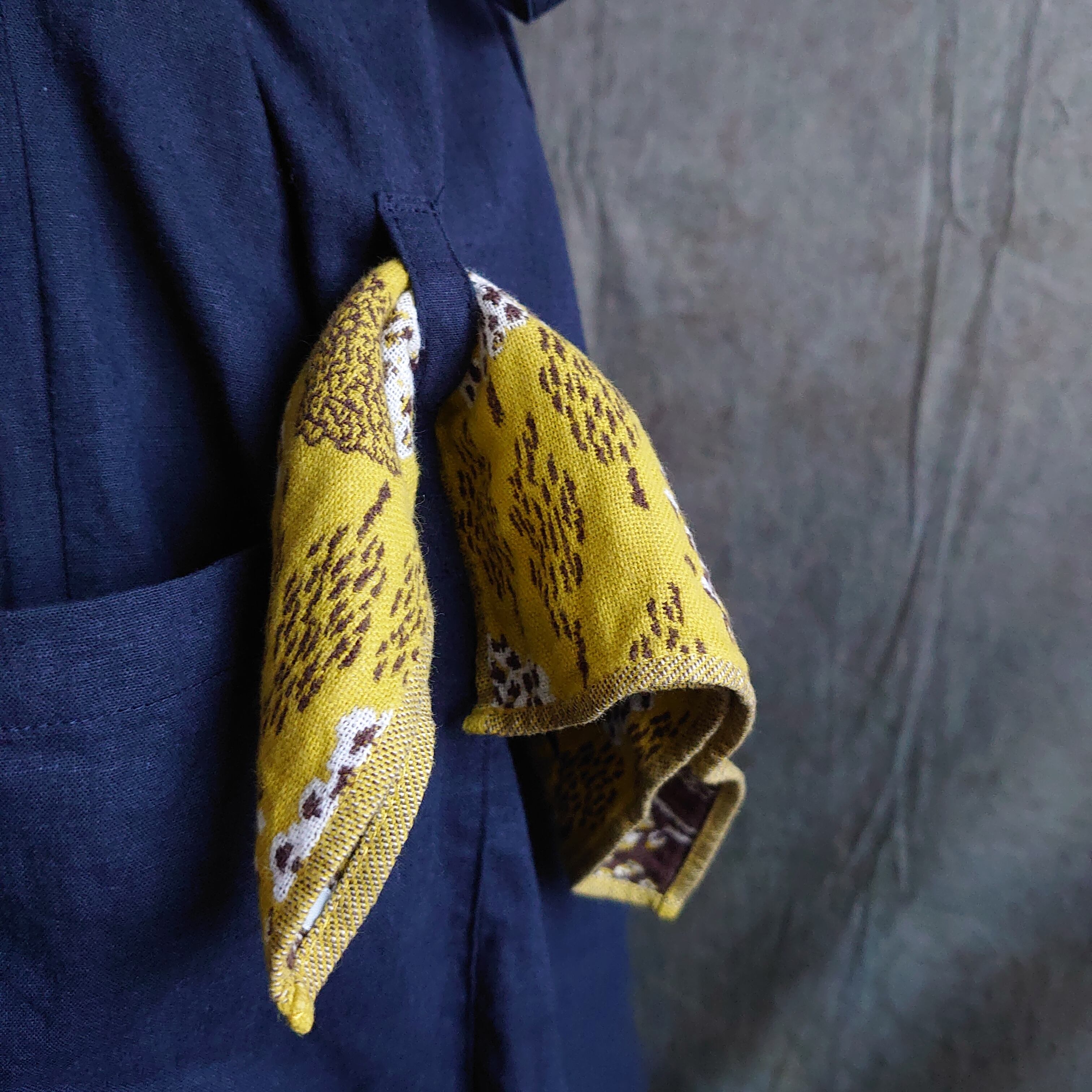 ハーフリネンの生地を染色後、生地を引っ張ることなく自然な状態で休めたため、