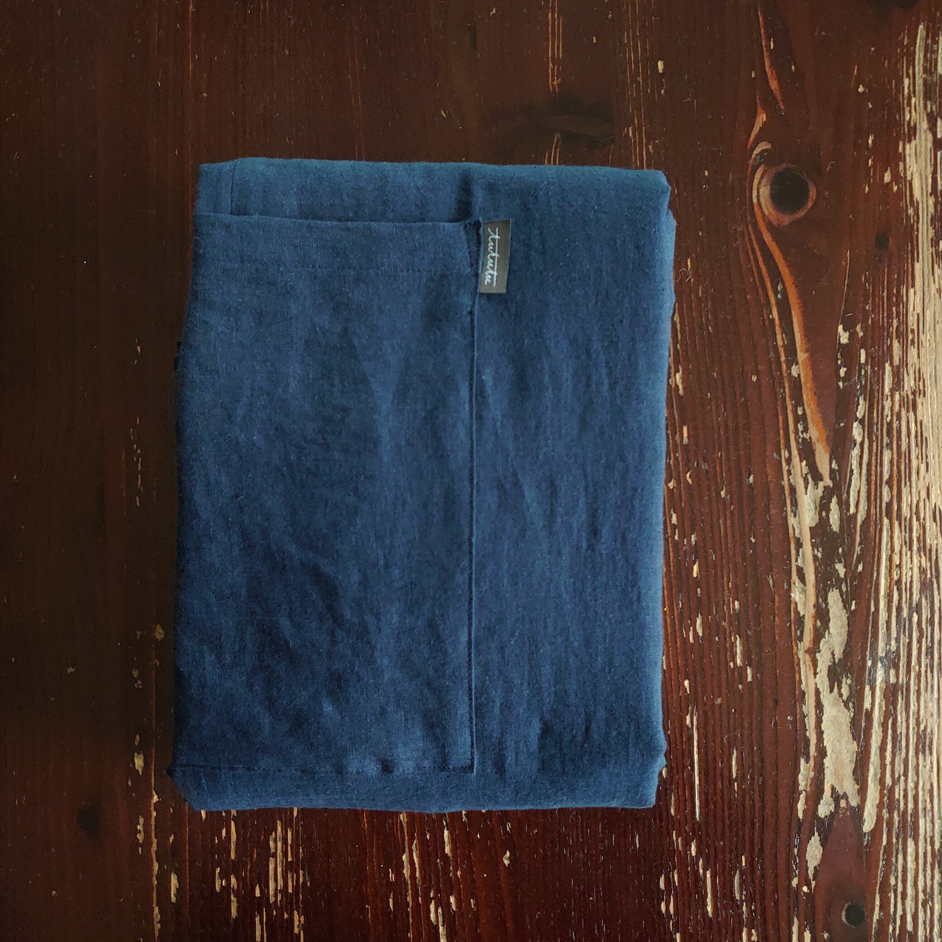 ハーフリネンの生地を染色後、生地を引っ張ることなく自然な状態で休めたため、
