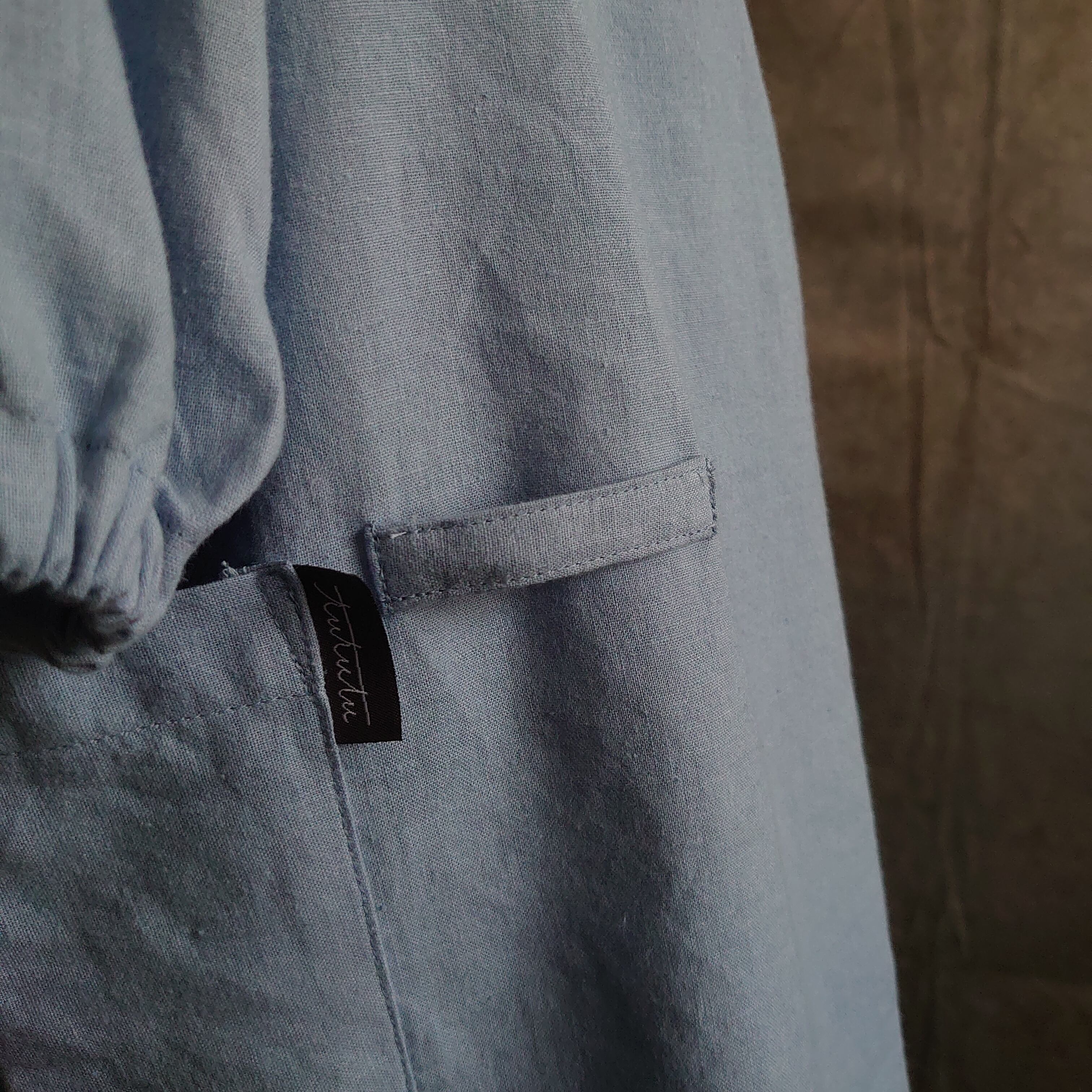 全て紐を緩めると袖以外はギャザーはなくなって平らになりますので、洗濯後乾きやすく、アイロン掛けもらくらく。