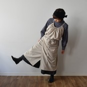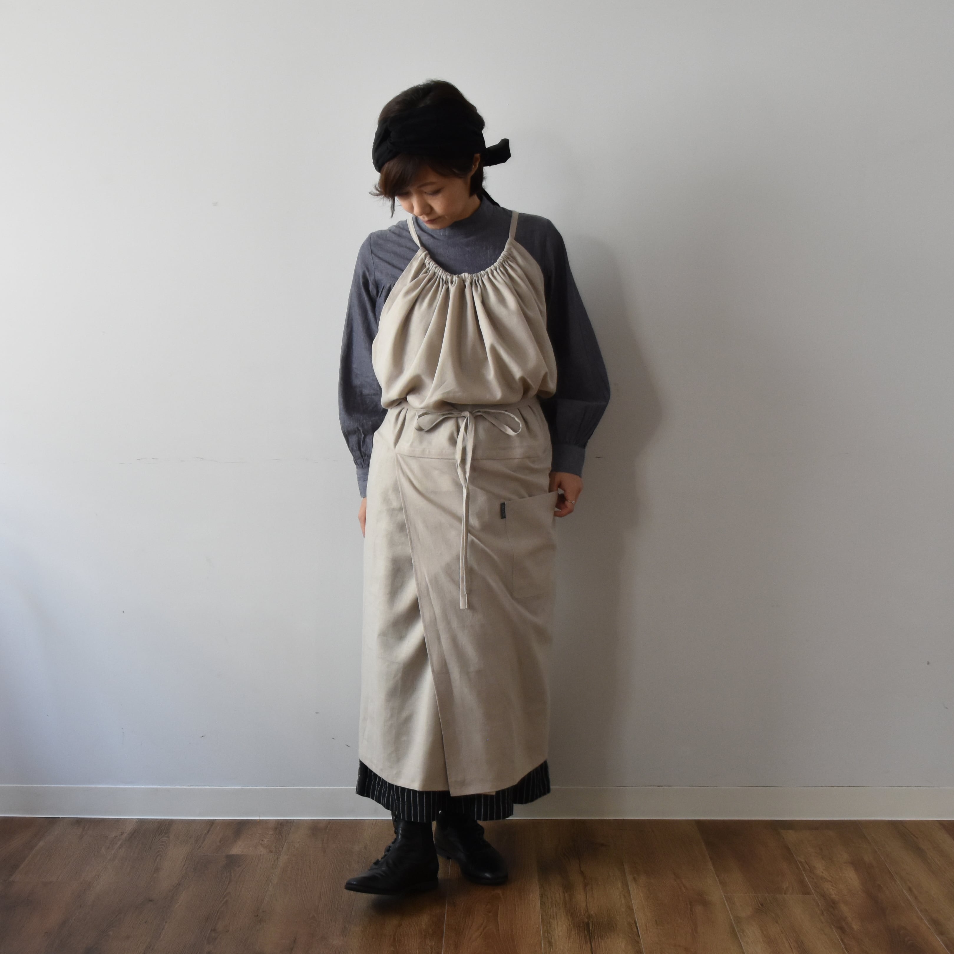 着るとたっぷりとしたギャザーがありますが、広げた時にはギャザーがないので、お洗濯やアイロンがけがらくらく。