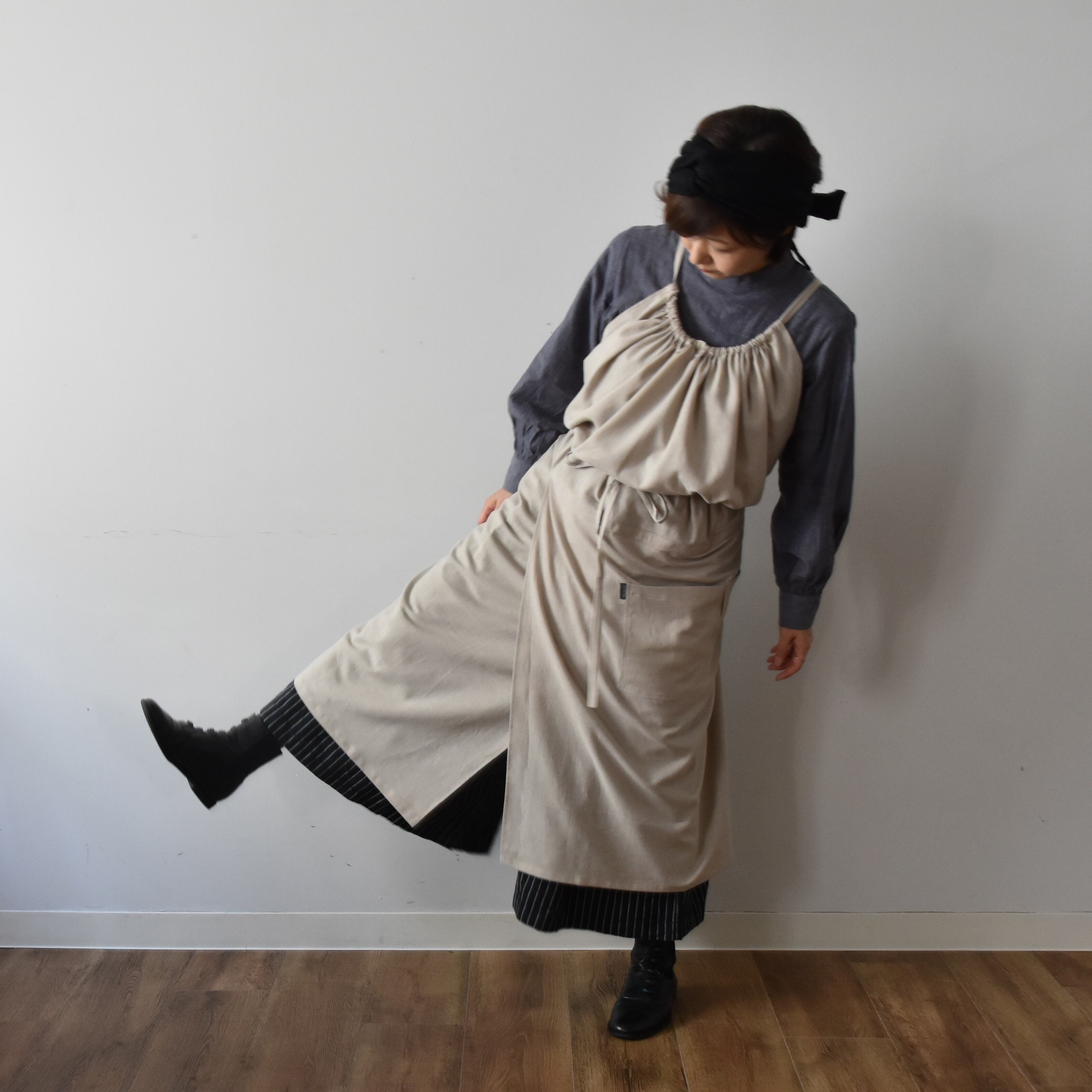 広げると長方形のカタチの不思議なエプロン。