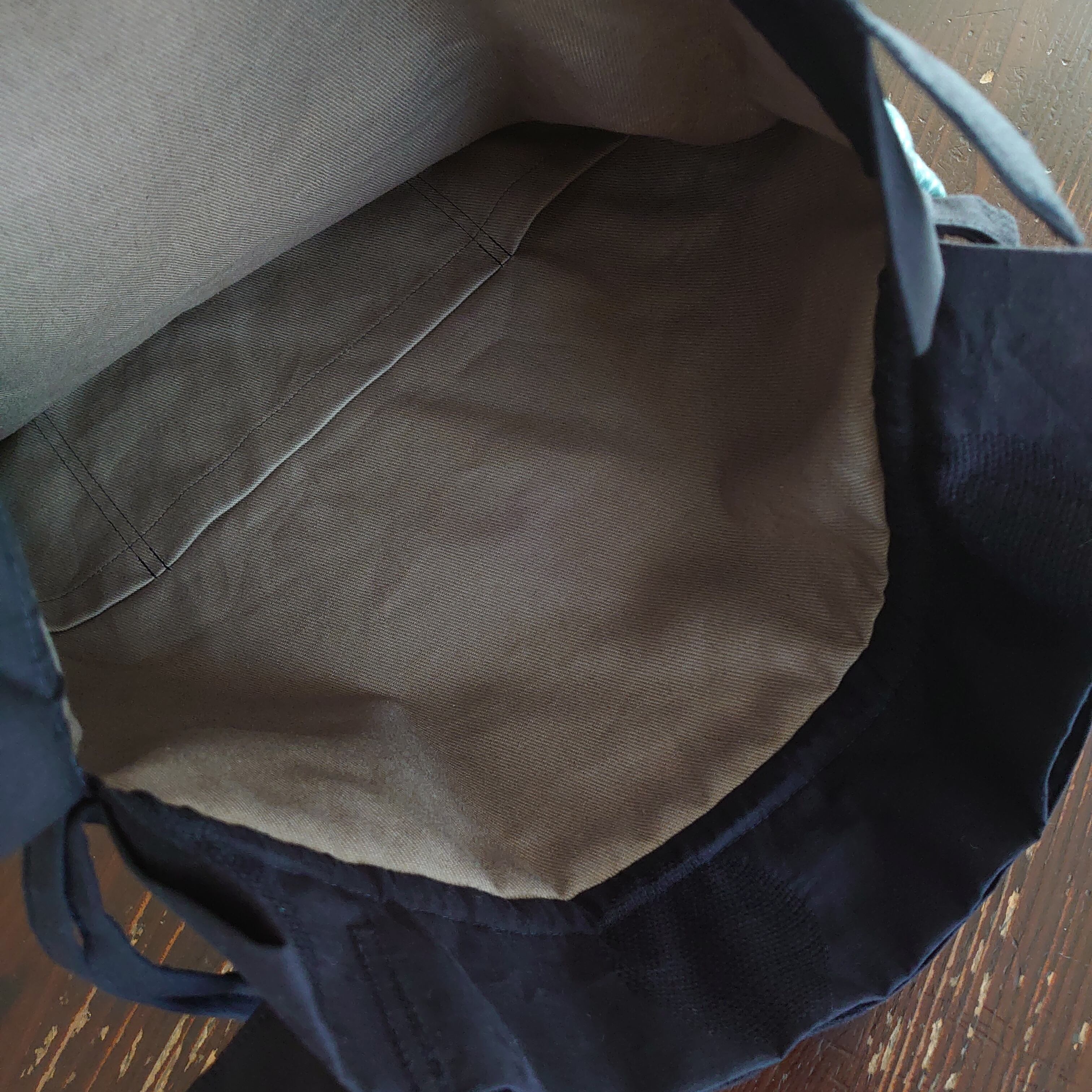 トートバッグをセットする際に通す部分が、紐を絞ると取手になるので、手で持ってちょっとしたお出掛けにも。