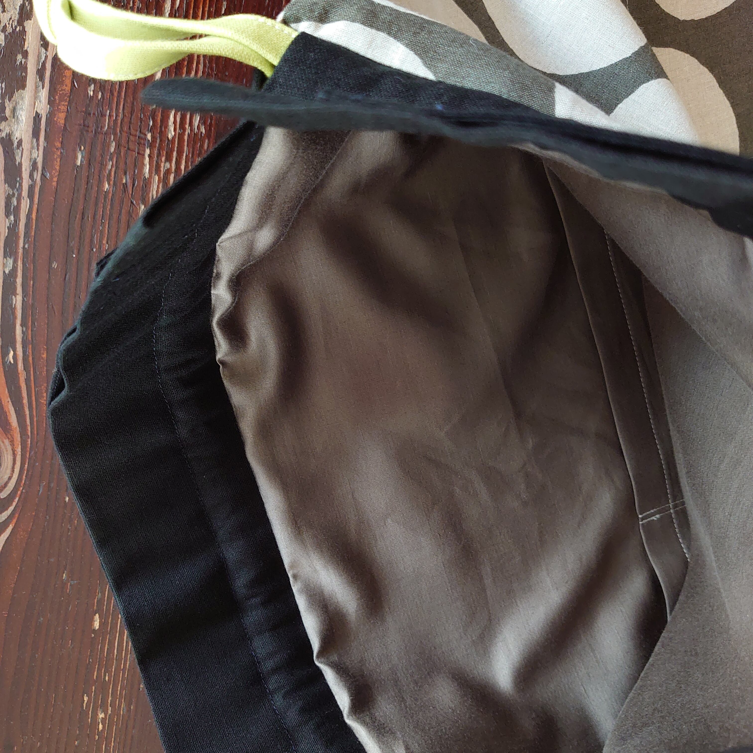 インナーバッグのセットは、インナーバッグを中に入れて、その取手部分にトートバッグの取手を通すだけ。スナップで留めたり、紐で結ぶ必要がないので、脱着が簡単です。