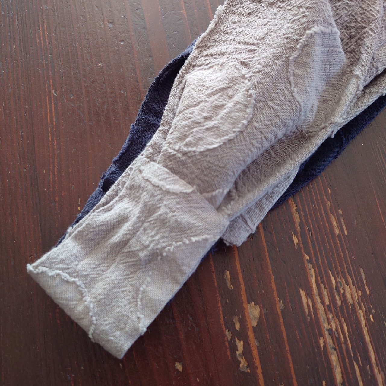 リネン特有のネップや生地のデザイン加工による毛羽立ちがあります。